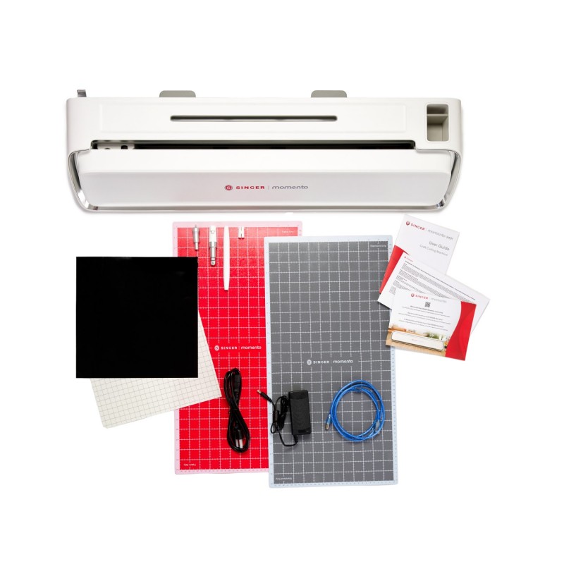 ![]() | La trousse complèteCommencez à créer le premier jour. Votre machine SINGER® Momento™ est livrée avec une lame de base, une lame rotative, un tapis antidérapant, un stylo et des échantillons de matériaux pour vous permettre de réaliser votre premier projet. |